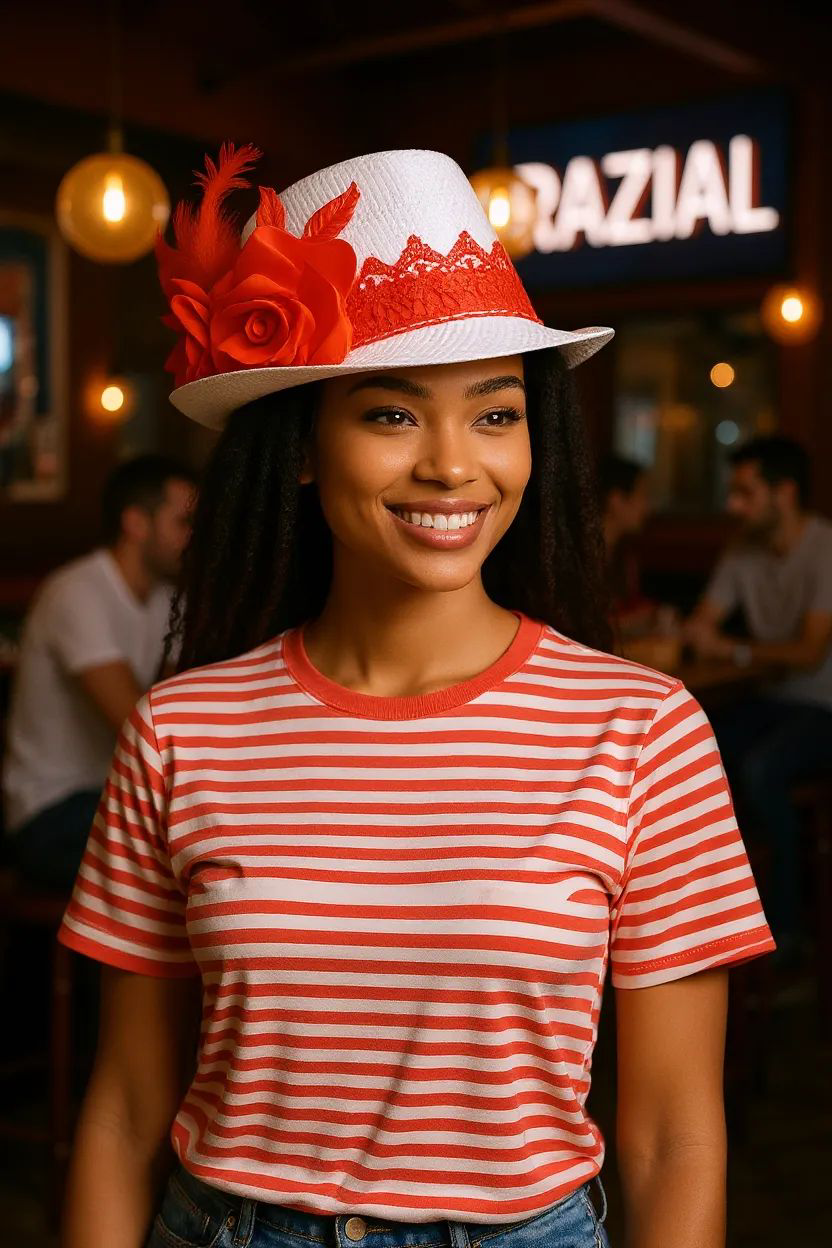 Aba Curta na cor branca com detalhes vermelho